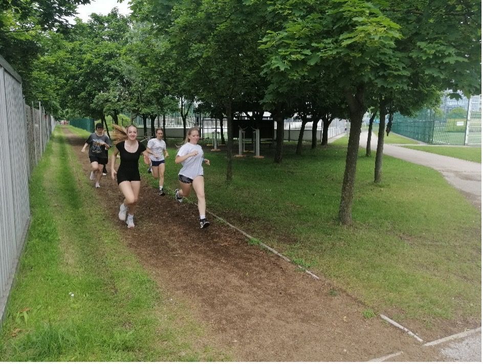Pri urah športne vzgoje smo izvedle delavnice (s pomočjo didaktičnih gradiv na internetni strani slovenske Karitas), kjer so se dijakinje seznanile s problemom podnebnih sprememb in s tem povezane revščine. Ob gledanju fotografij, filmov in zgovornih podatkih o posledicah podnebnih sprememb, smo se pogovorile o tej problematiki in predlagale so, kaj konkretnega bodo v svojem življenju spremenile za reševanje le-te. Za projekt smo seštele pretečene kilometre pri urah športne vzgoje (različne oblike vzdržljivostnega teka), ki so jih dijakinje tekle že v jesenskih mesecih ter dodale kilometre iz udeležbe na Ljubljanskem maratonu ter spomladanskem in jesenskem krosu. Naše dijakinje tretjih letnikov so se odločile in med različnimi nameni teka, izbrale skupinski namen, in sicer, da so tekle v znamenje solidarnosti do dečka Nangira, da bi lahko preživel svoje koze. Dijakinje prvih letnikov pa so tekle v solidarnosti do tistih, ki zaradi posledic podnebnih sprememb nimajo dovolj hrane in pitne vode.