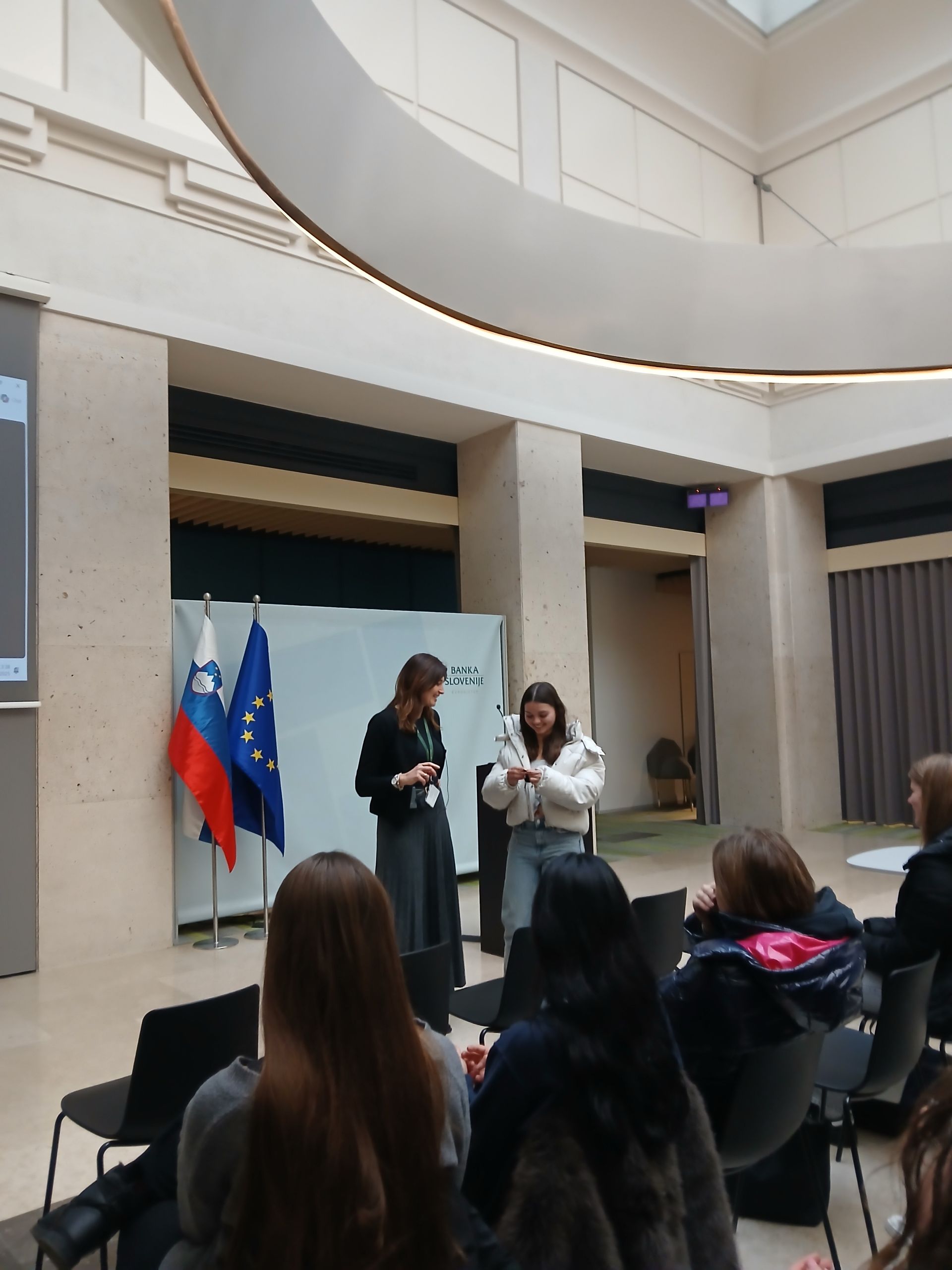 V mesecu decembru in januarju smo z dijaki 3. letnika obiskali muzej Banke Slovenije. Ob prihodu v muzej so se dijaki najprej pomerili v kvizu. Najboljši poznavalci finančnega opismenjevanja so prejeli spominski kovanec Mikija Mustra. Sledil je ogled muzeja, kjer smo spoznali delovanje Banke Slovenije in si ogledali bankovce od samostojne Slovenije naprej. Najbolj smo bili fascinirani nad stolom, ki je narejen iz uničenih bankovcev. Na koncu so se dijaki podali še na lov za zakladom, kjer so spoznali slovenski tolar.
